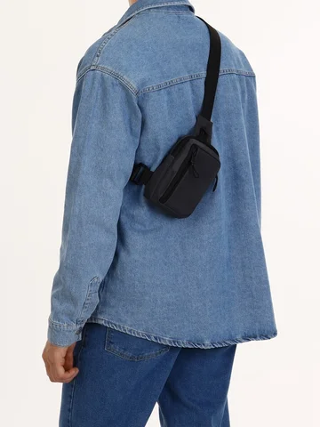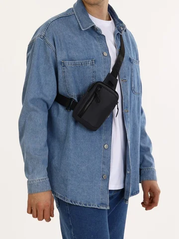 Сумка - слинг мужская, из текстиля, серая No brand