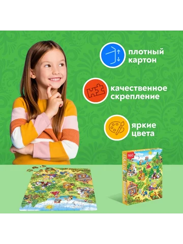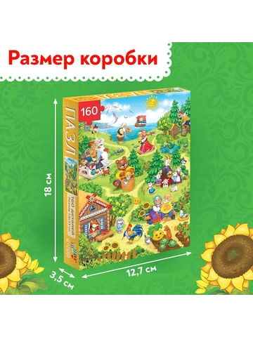 Пазл детский «Сказки», 160 элементов. Пазл «Сказки» — это занимательная развивающая игра, которая стимулирует познавательную активность и помогает упорядочить мысли. Ребенок соберет все 160 деталей в одно целое, и получит красочную картинку размером 34 × 24 см. Польза собирания пазлов для детей: