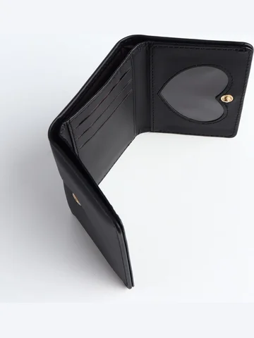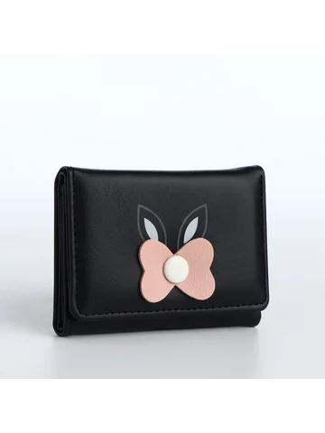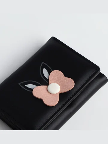 Кошелек «Цветочек», маленький, для девочки, на кнопке, черный.