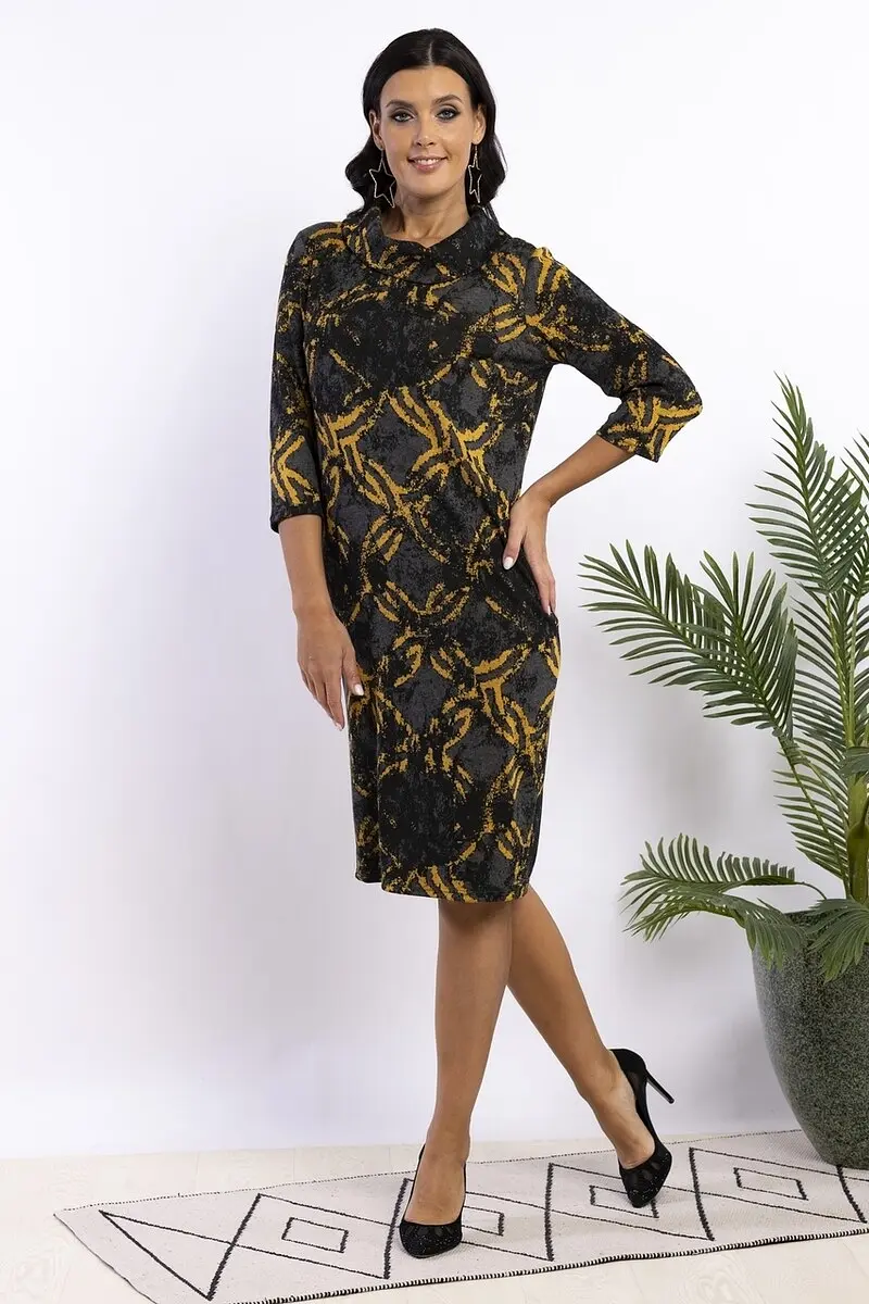 Классическое платье прямого силуэта с отложным воротником хомут . Линия плеча по плечевой точке. Длина рукава 3/4. Длина изделия 102-108см. Обращаем внимание, что рост модели 180см. Ткань с содержанием шерсти, на ощупь мягкая без ощущения колкости. Внешняя поверхность абсолютно ровная матовая. Красивое платье для офиса от AhaLodensa для базового гардероба. Осенне-зимняя коллекция.