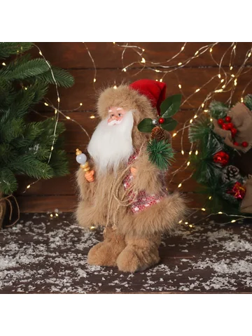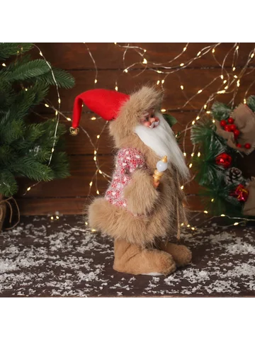 Дед Мороз под елку «Зимнее волшебство. Новогодняя игрушка в вязаном костюме» двигается, с подсветкой, 30 см, красный. Новогодняя фигурка Деда Мороза в вязаном костюме высотой 30 см с подсветкой и движением создаст уютную атмосферу зимнего праздника. Выполненная в стиле скандинавского шебби-шига, она сочетает традиционные элементы с современным дизайном, подчеркивая тепло и домашний комфорт. Питание от батареек обеспечивает свободу размещения без проводов. Особенности
