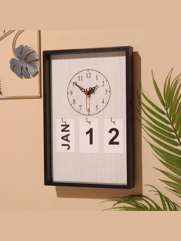 Сувенир вечный календарь подвесной с часами, 2×20×30 см, дерево, черный No brand
