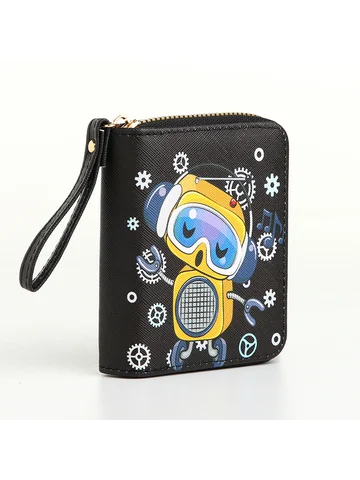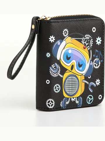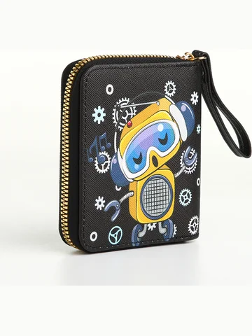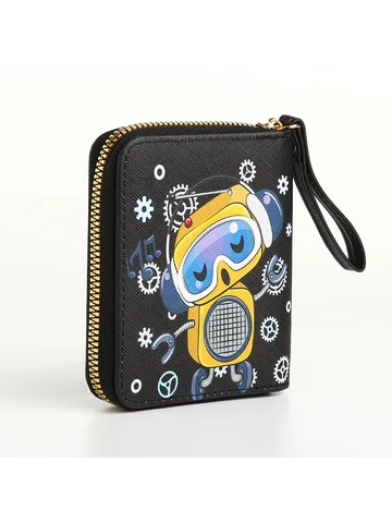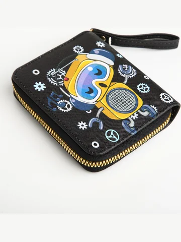 Кошелек на молнии, черный. Этот черный кошелек с роботом создан для тех, кто ищет баланс между функциональностью и стилем. Он хранит ваши средства организованно, освобождая пространство для мыслей о важном. Особенности