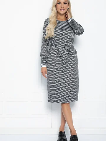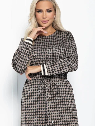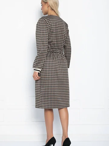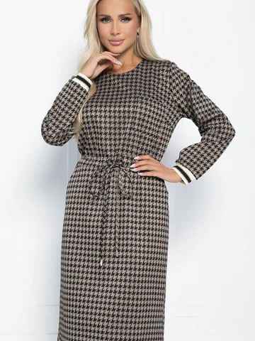 Элегантное платье из трикотажа прекрасно подойдет для создания комфортного повседневного образа. Правильный крой и гармоничная длина обеспечат идеальную посадку. Изделие дополняет кулиска, которая подчеркивает линию талии. Рукав длинный, втачной, по низу контрастный манжет.