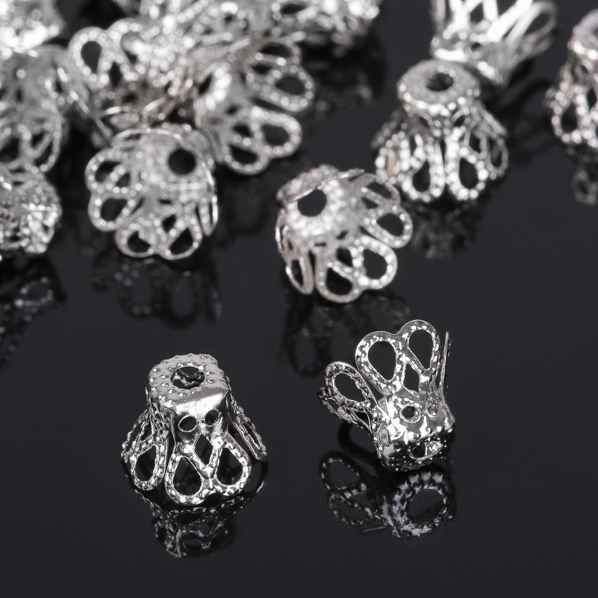 Шапочки для бусин (набор 50 шт.), см-091, 8×10 мм, цвет серебро Queen fair
