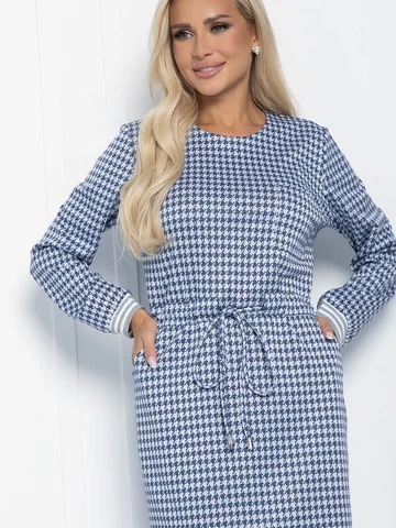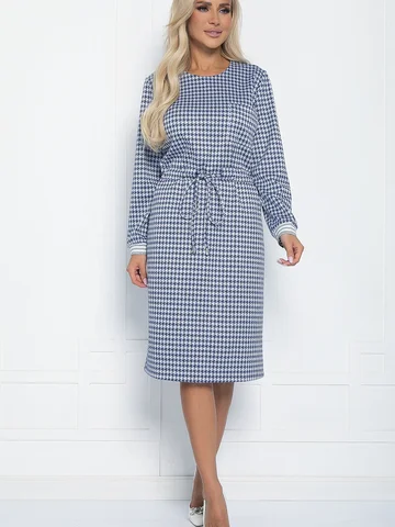 Элегантное платье из трикотажа прекрасно подойдет для создания комфортного повседневного образа. Правильный крой и гармоничная длина обеспечат идеальную посадку. Изделие дополняет кулиска, которая подчеркивает линию талии. Рукав длинный, втачной, по низу контрастный манжет.