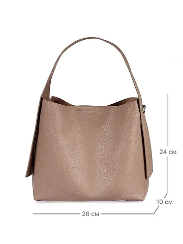 Сумка не подошла по цвету, ближе к капучино. Форму держит только с наполнением, тяжеловата, поэтому минус два балла. Изготовлена качественно.