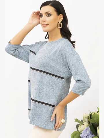 Блуза свободного силуэта с ассиметричным рельефом переда. Перед декорирован молниями. Тип горловины круглый вырез. Линия плеча по плечевой точке. Длина рукава 3/4. Длина изделия по спинке 66-68 см. Обращаем внимание, что рост модели 180см. Ткань мягкая, легко драпируется. Красивая блуза от Ahalodensa для базового гардероба.