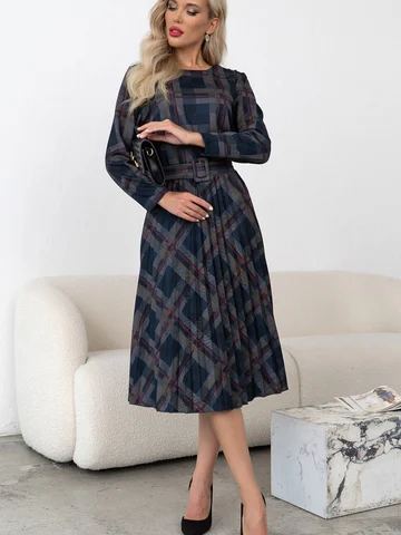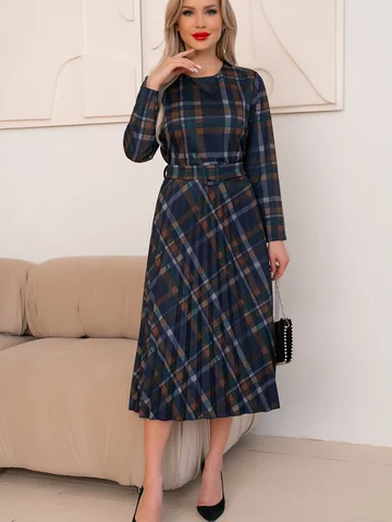 Классическая модель платья для офиса. Приталенный силуэт, отрезное по талии и юбка плиссе. Элегантное модель подойдет для деловой встречи, работы в офисе и выхода на любое мероприятие. Линию талии подчеркивает пояс с пряжкой. Платье без молнии. Длина рукава -56 см. Обращаем ваше внимание - расположение рисунка может меняться.