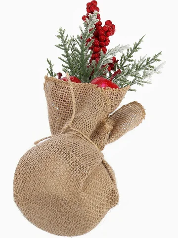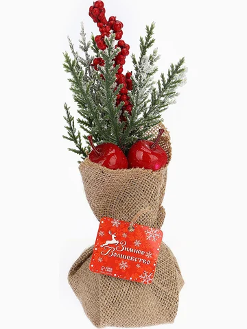Новогодняя композиция на стол «Зимнее волшебство. Яркий праздник», в мешочке, 23×10 см. Новогодняя композиция «Яркий праздник» — это стильное и мягкое дополнение для праздничного стола или подоконной зоны. Изделие размером 23х10 см выполнено из пластика и текстиля, оформлено в зелено-красно-коричневой гамме и создано в духе скандинавского дизайна — решение для тех, кто ценит натуральные формы, свет и атмосферу зимнего уюта. Особенности