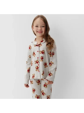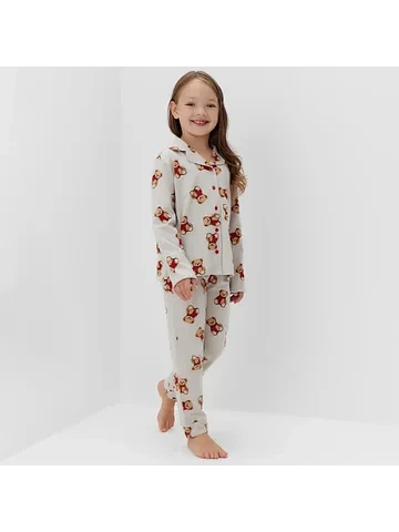 Пижама детская (рубашка и брюки) KAFTAN «Мишка в шарфе» размер 28 (86-92 см).