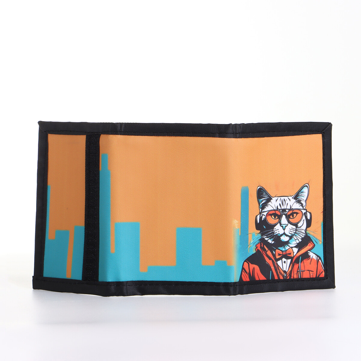 Кошелек детский на липучке Выбражулька, оранжевый. Этот оранжевый детский кошелек с котиком из коллекции «Выбражулька» помогает мальчику почувствовать себя самостоятельным, аккуратно храня первые карманные деньги. Веселый дизайн и удобная застежка превращают его в личный аксессуар, который хочется брать с собой на прогулки. Главные преимущества