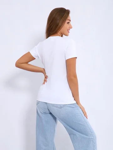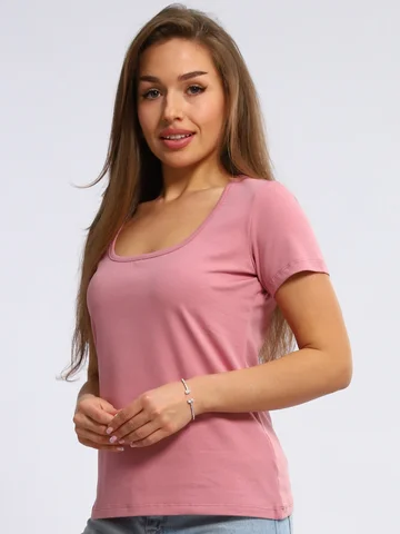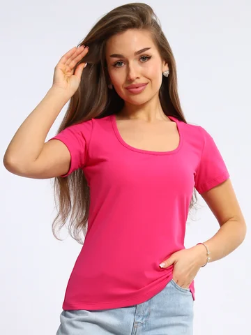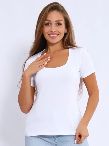 Футболка из хлопкового стрейчевого трикотажа, короткий рукав и открытая горловина эффектно подчеркивают красоту женской фигуры. Незаменима для составления как офисного лука, так и спортивного.