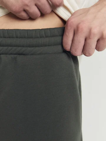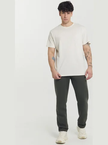 Прямые свободные мужские брюки. Выполнены из легкого трикотажного футера с подчесом. Пояс – с эластичной тесьмой внутри и шнурком-завязкой, который позволяет регулировать ширину в талии. Есть удобные боковые карманы. Гульфик – не функциональный. Брюки снизу подогнуты. Стильные и комфортные брюки мужские для ежедневной носки. Натуральный материал в составе позволяет использовать данные брюки в любое время года. Дополнить можно стильным верхом на свой вкус. Брюки удобные и практичные, хорошо подойдут на любой тип мужской фигуры. Рекомендуем!