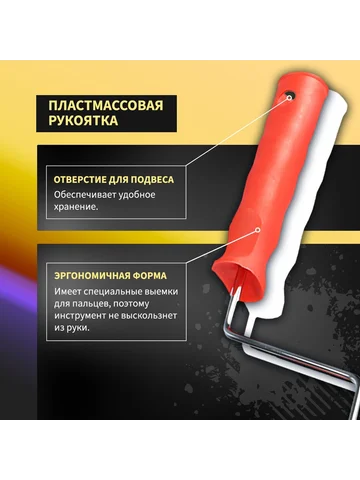- Пластиковая рукоятка с бюгелем 6 мм: Легкая и удобная конструкция. Совместима со стандартными держателями для валиков.