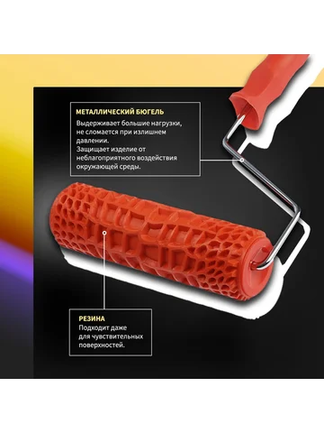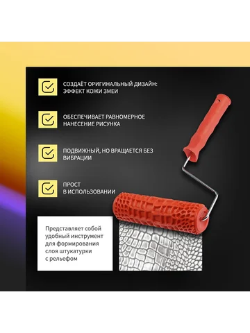 - Резиновая рабочая поверхность: Создает четкий повторяющийся узор «змеиная кожа». Материал устойчив к деформациям и сохраняет фактуру при длительном использовании.