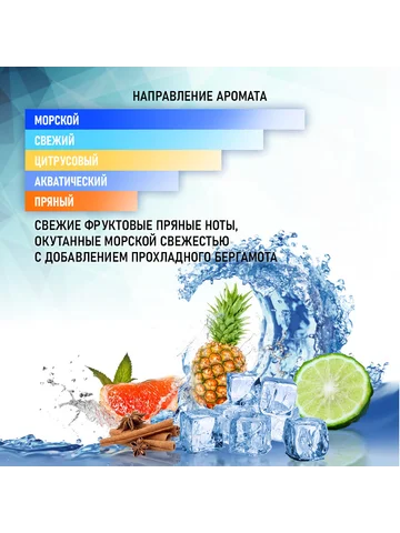 Современный стильный мужественный интенсивный аромат с легким парфюмированным шлейфом придаст ощущение свежести и уверенности в себе на протяжении всего дня.