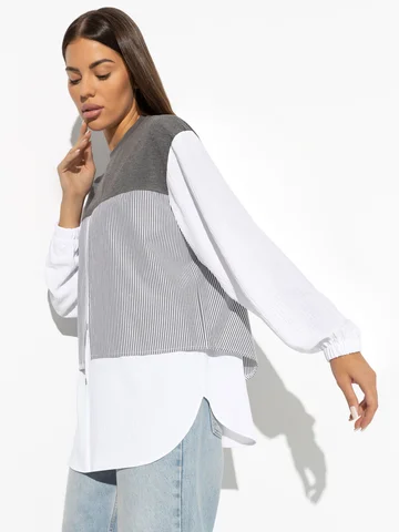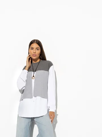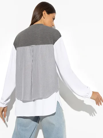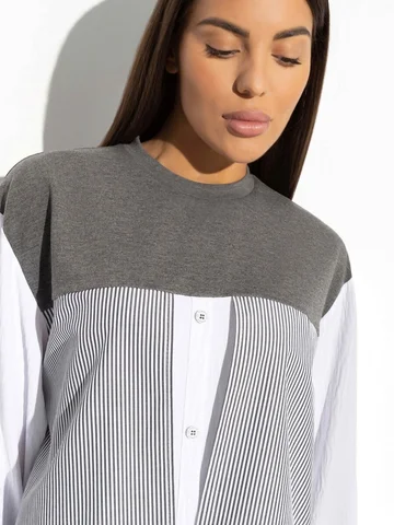 Те, кто желает не повторять за вами, а всего лишь вдохновиться, терпят модное фиаско. Создать подобный образ, не переходя на сайт CHARUTTI за уникальным свитшотом, невозможно. Помните, что подражание – лучшая форма похвалы. Свитшот свободного кроя. Имитация многослойности. Рукава оформлены резинкой.