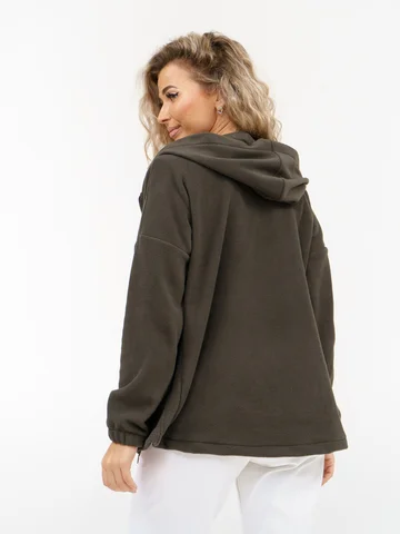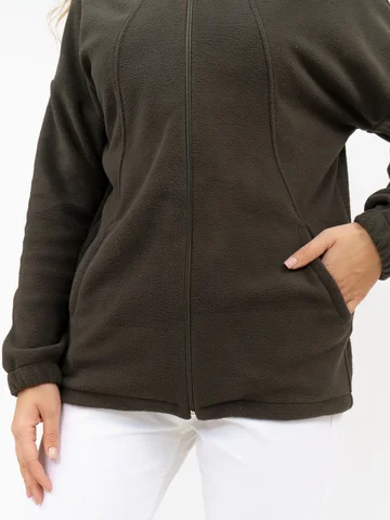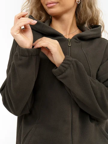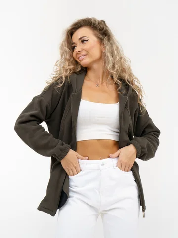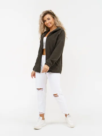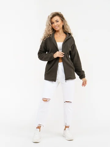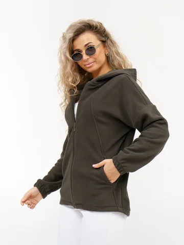 Женская толстовка на молнии из мягкого флиса с антипиллинговым покрытием – идеальный выбор для холодного времени года. Эта теплая олимпийка с капюшоном изготовлена из высококачественного микрофлиса, который обеспечивает комфорт, уют и отличную терморегуляцию. Модель отличается легкостью, практичностью и свободным кроем, не сковывающим движения, что делает ее популярной среди любителей активного отдыха, охоты и рыбалки. Благодаря втачным рукавам и оверсайз дизайну толстовка удобна в носке как для повседневных образов, так и для спортивных тренировок. Флисовый материал обладает высокой воздухопроницаемостью, практически не впитывает влагу и сохраняет тепло даже в прохладную погоду. Гипоаллергенная ткань приятна к телу, а стойка воротника надежно защищает от холодного ветра. Стильные карманы и рельефные детали на полочках добавляют образу современности и уникальности. Удлиненный крой и свободный силуэт делают эту модель универсальной для любого типа фигуры. Молния позволяет регулировать степень открытия горловины. Капюшон дополнен кулиской для дополнительной защиты от непогоды. Эта флисовая худи – must-have в гардеробе современной девушки, которая ценит комфорт, практичность и стиль. Отличное сочетание функциональности и модного дизайна . Быстро сохнет, не требует особого ухода, сохраняет форму после множества стирок. Идеально подходит для прогулок, занятий спортом, путешествий и повседневной носки.
