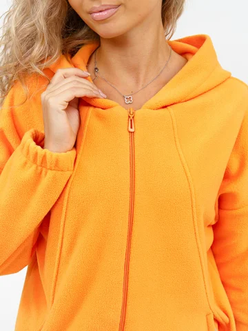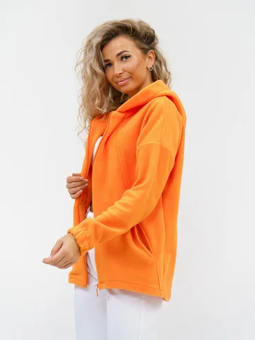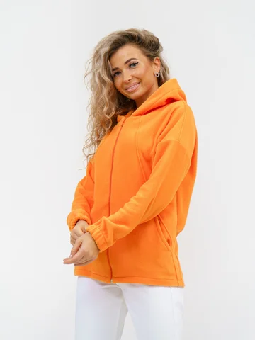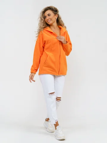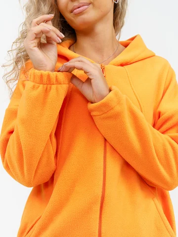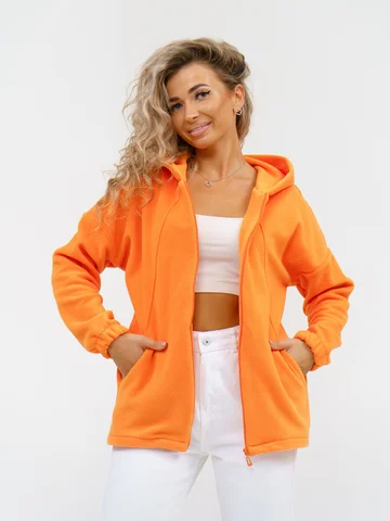 Женская толстовка на молнии из мягкого флиса с антипиллинговым покрытием – идеальный выбор для холодного времени года. Эта теплая олимпийка с капюшоном изготовлена из высококачественного микрофлиса, который обеспечивает комфорт, уют и отличную терморегуляцию. Модель отличается легкостью, практичностью и свободным кроем, не сковывающим движения, что делает ее популярной среди любителей активного отдыха, охоты и рыбалки. Благодаря втачным рукавам и оверсайз дизайну толстовка удобна в носке как для повседневных образов, так и для спортивных тренировок. Флисовый материал обладает высокой воздухопроницаемостью, практически не впитывает влагу и сохраняет тепло даже в прохладную погоду. Гипоаллергенная ткань приятна к телу, а стойка воротника надежно защищает от холодного ветра. Стильные карманы и рельефные детали на полочках добавляют образу современности и уникальности. Удлиненный крой и свободный силуэт делают эту модель универсальной для любого типа фигуры. Молния позволяет регулировать степень открытия горловины. Капюшон дополнен кулиской для дополнительной защиты от непогоды. Эта флисовая худи – must-have в гардеробе современной девушки, которая ценит комфорт, практичность и стиль. Отличное сочетание функциональности и модного дизайна . Быстро сохнет, не требует особого ухода, сохраняет форму после множества стирок. Идеально подходит для прогулок, занятий спортом, путешествий и повседневной носки.