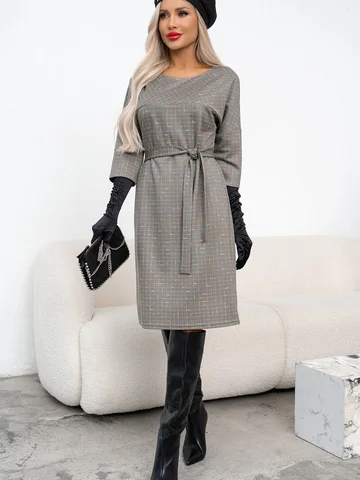 Платье прямого силуэта, пройма рукава - летучая мышь, придаст свободу движениям. Модель универсальная, подойдет на любую фигуру, и скроет ее недостатки, а пояс подчеркнет линию талии и придаст изящности образу. По спинке-небольшой разрез. Беспроигрышный вариант вариант для офиса и повседневного ношения.