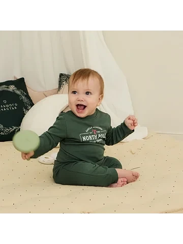 Костюм детский (штанишки, кофточка) «Крошка Я. Еловые веточки», рост 62-68 см, зеленый.