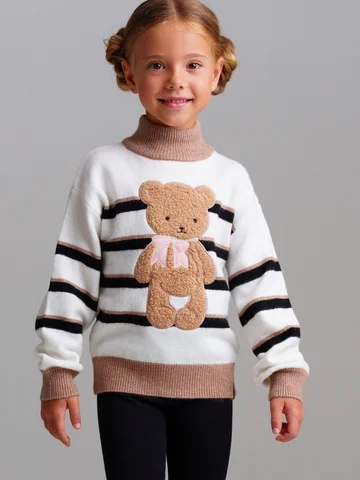 Свитер детский для девочки. Свитер из вязаного трикотажа с добавленим вискозы. Модный свитер жаккардовой вязки с высоким содержанием вискозы. Вискоза хорошо поглощает влагу, отлично пропускают воздух. Изделия приятны к телу, и не вызывают раздражения. Модель из капсульной коллекции BLACK CHIC (БЛЭК ШИК). Соберите полный образ в едином стиле!