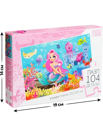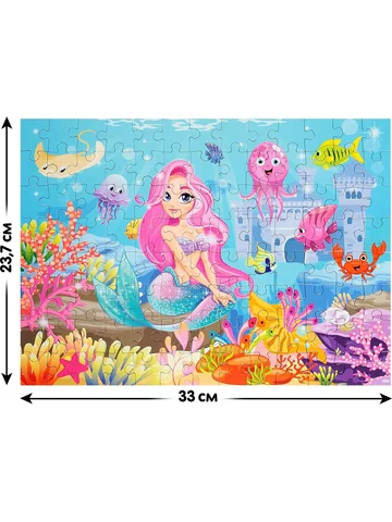Пазл «Подводная сказка», 104 элемента. Пазл — это занимательная развивающая игра, которая стимулирует познавательную активность и помогает упорядочить мысли. Соберите все детали в одно целое, и вы получите красочную картинку размером 33 × 23, 7 см. Польза собирания пазлов для детей: