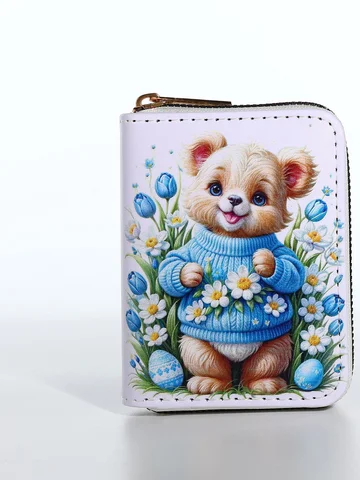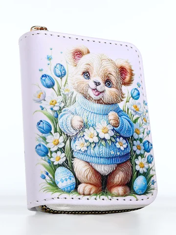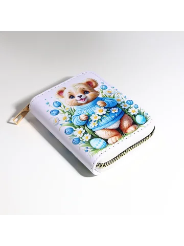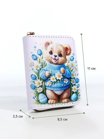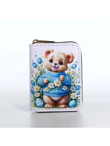 Кошелек на молнии «Мишка», детский, с принтом, белый.