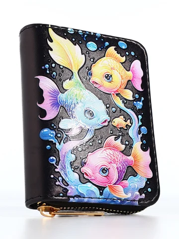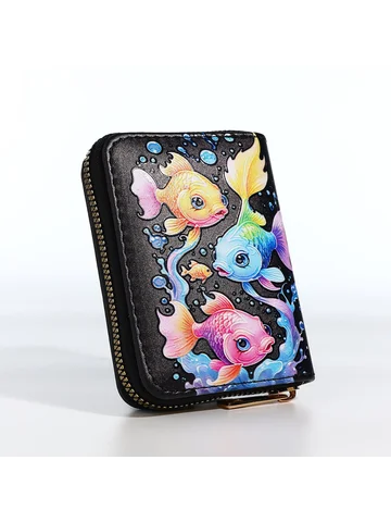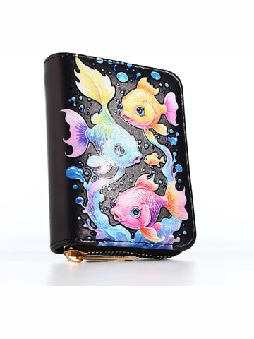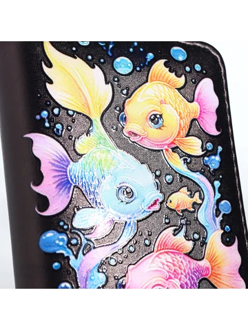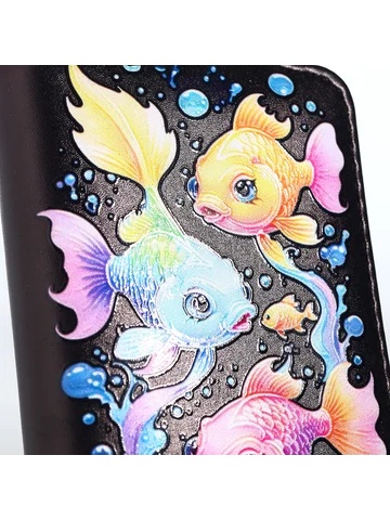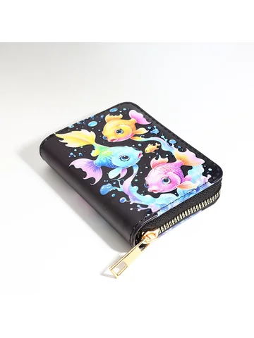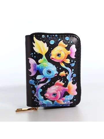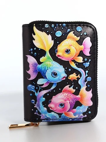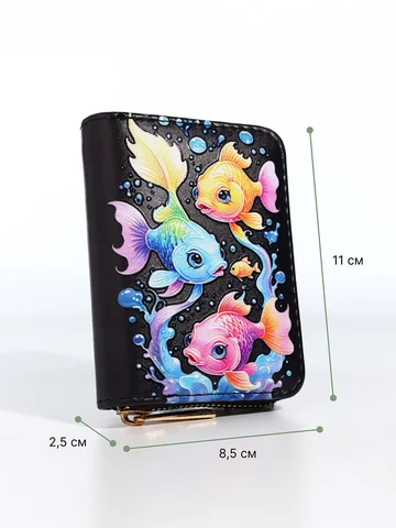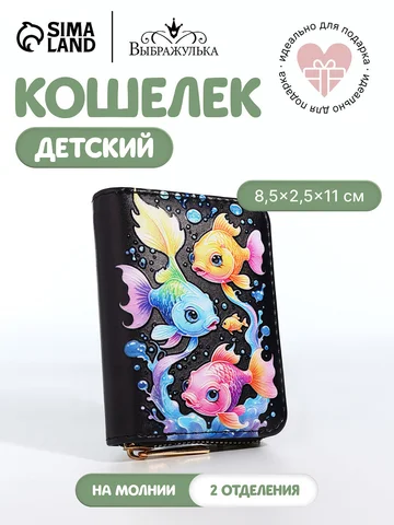 Кошелек на молнии «Рыбы», черный. Этот черный кошелек с загадочным морским миром станет элегантным спутником вашей дочки в ее первых финансовых открытиях. Глубокий оттенок и таинственные обитатели океана создают стильный образ, а практичная организация внутреннего пространства помогает содержать карманные деньги в идеальном порядке. Компактный размер удобно ложится в детскую руку, становясь первым шагом к самостоятельности. Почему этот кошелек так нравится девочкам