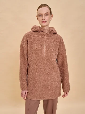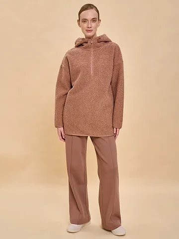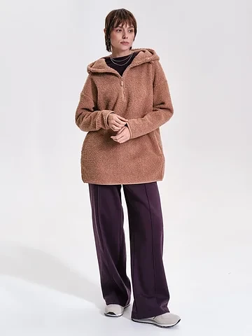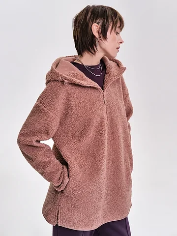 Женская флисовая толстовка – это стильный и универсальный элемент гардероба, сочетающий уют, тепло и практичность. Толстовка-анорак выполнена из мягкого флиса с фактурой под барашек, благодаря чему она дарит комфорт и сохраняет тепло даже в прохладную погоду. Такая кофта идеально подходит для повседневной носки, прогулок, путешествий, активного отдыха и домашних вечеров. Пушистая толстовка для женщин отличается объемным воротником, который можно носить как стойку или в отложном варианте. Свободный силуэт делает изделие универсальным: толстовку легко комбинировать с джинсами, спортивными брюками, леггинсами или юбками, а также носить как самостоятельную кофту или под куртку. Флисовая кофта под барашка способна заменить анорак, плюшевую ветровку, куртку свободного кроя или джемпер женский. Дополнительный комфорт обеспечивают удобные боковые карманы с отделкой из гладкого «курточного» материала. Такая демисезонная флиска представлена в трендовых оттенках и гармонично вписывается в современный гардероб. Независимо от времени года – весной, летом, осенью или зимой – женская толстовка из флиса под барашек подчеркнет ваш стиль, подарит тепло и станет практичным решением для любой ситуации.