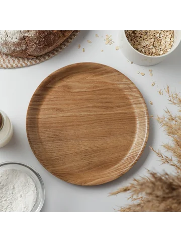 Тарелка Доляна «Заря», d=24.5 см. Деревянная плоская тарелка диаметром 24,5 см с однотонным бежевым покрытием — это практичный и стильный предмет посуды для сервировки стола. Изготовленная из туи с рельефной текстурой, она отлично подойдет для подачи горячих и холодных блюд, а также для оформления праздничных застолий. Простая в использовании и уходе, такая тарелка станет надежным дополнением к вашей посудной коллекции. Особенности