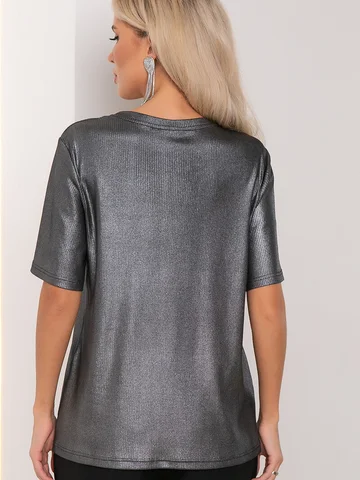 Базовый крой женской футболки-блузы оверсайз с металлизированным эффектом будет сочетаться с шортами, юбкой, брюками, джинсами и т.д. Данные блузки позволят создавать самые различные праздничные образы - яркие, современные, стильные. Используется трикотажное полотно "лапша" с эффектом напыления.