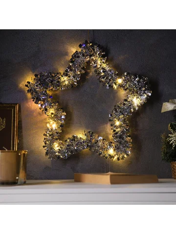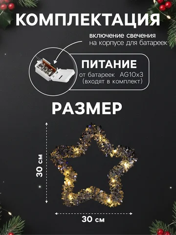 Светодиодная фигура из мишуры «Звезда красная» 30×5 см, 20 LED, батарейки AG10×3 (в комплекте), свечение теплое белое.