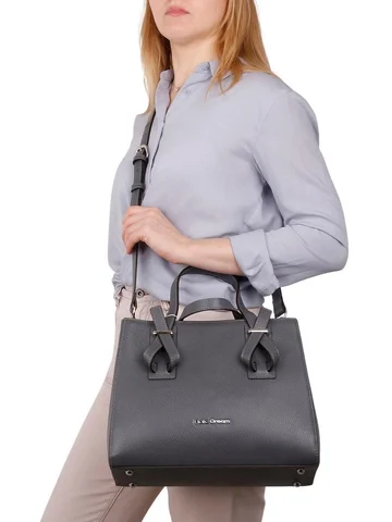 Сумка женская на двух ручках из натуральной зернистой кожи закрывается на молнию. В городском классическом стиле. Легкая стильная удобная. Хорошо держит форму. Подходит для повседневной носки офиса в качестве подарка. Внутри два отделения, один карман на молнии, два открытых кармана. В комплект входит съемный плечевой ремень. Максимальная длина ремня 125 см. На дне сумки металлические ножки. Вес сумки 800 грамм в упаковке 950 грамм.Высота ручек 15 см. Натуральная кожа-100%. Высота - 23 см, ширина - 31 см, глубина - 15 см