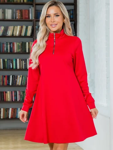 Комфортное платье А-силуэта. Выполнено из трикотажного полотна. Воротник стойка. По переду заложена застежка на молнию. Длинный втачной рукав 62 см. Низ ровный, без разрезов. Модель станет прекрасным дополнением к Вашему гардеробу. Без подклада. Без застежки. ДИ в 42-44 р 88 см, в 46-48 р 92 см, в 50-54 р 95 см.