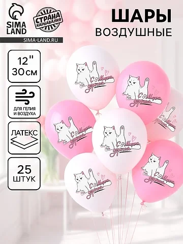 Воздушные шары латексные 12" «С 8 марта», 25 шт.. Набор латексных шаров «С 8 марта!» — не просто украшение, а мягкий фон для важного дня. Палитра создает ощущение праздника без суеты: тепло, по-домашнему искренне — как объятие перед входом в зал. Особенности