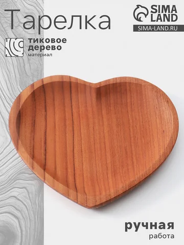 Тарелка «Сердце», 16×16×2 см, тиковое дерево.