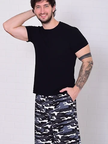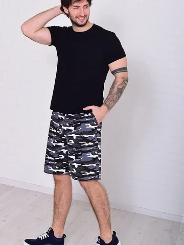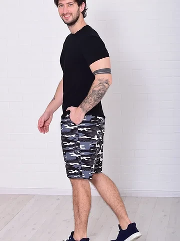 Шорты свободного кроя на резинке с двумя боковыми карманами и одним накладным сзади. Длина по боковому шву: 46-54см, 48-54см, 50-55см, 52-56см, 54-57см, 56-58см, 58-59см, 60-60см. Длина по шаговому шву: 46-24см, 48-24см, 50-24см, 52-24см, 54-24см, 56-25см, 58-26см, 60-26см. Уход: бережная стирка 30 градусов отдельно от других вещей.