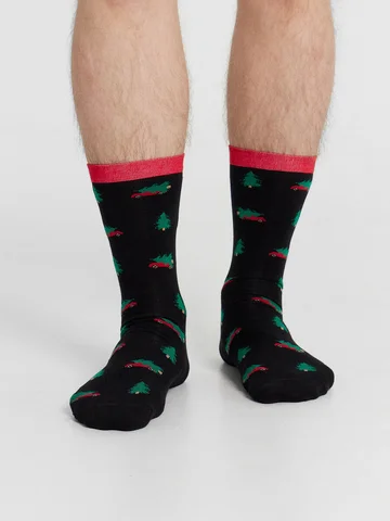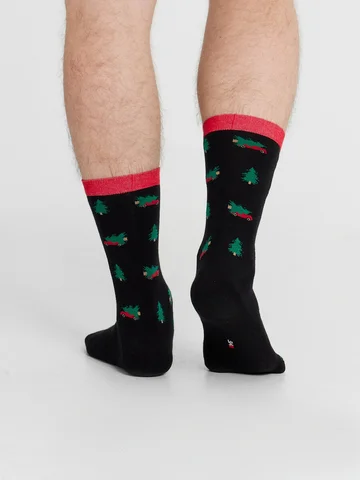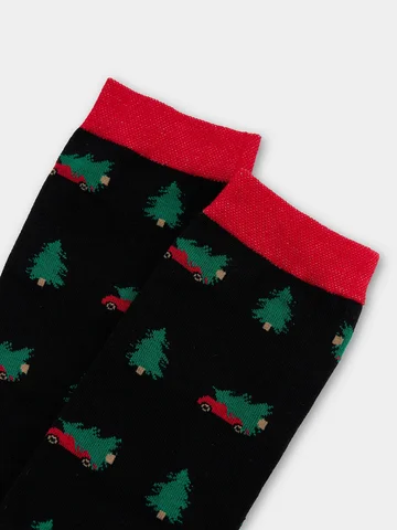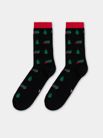 рис.2977 Мужской носок классический, высокий с рисунком в виде елок.