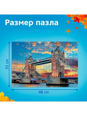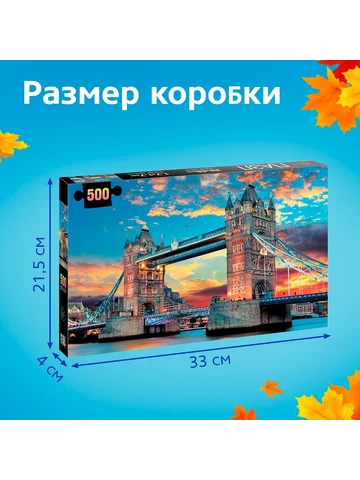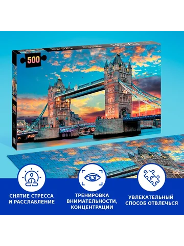 Пазл «Лондонский мост», 500 деталей. Пазл — это занимательная развивающая игра, которая стимулирует познавательную активность и помогает упорядочить мысли. Соберите все 500 деталей в одно целое, и вы получите красочную картинку размером 68 × 48 см. Польза собирания пазлов для детей: