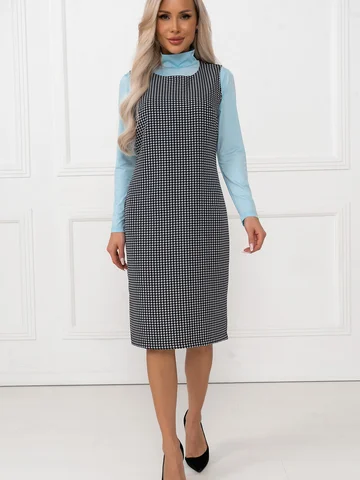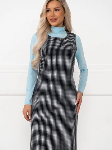 Этот серый сарафан из текстиля с узором "гусиная лапка" выполнен в полуприталенном силуэте, который красиво выделяет фигуру. Для удобства надевания предусмотрена молния на спине, а разрез снизу обеспечивает дополнительную свободу движений. Элегантный дизайн и комфорт этого сарафана делают его универсальным выбором для разнообразных повседневных ситуаций.