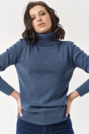 Длина изделия: 66 см.Особенности: Прямого силуэта выполнен из полушерстяной пряжи. Двойной воротник стойка широкие цельновязаные манжеты и низ изделия выполнены из плотной объемной резинки