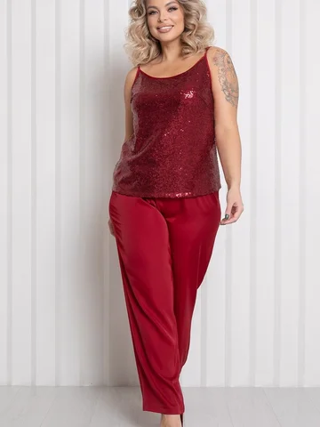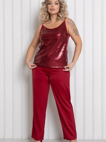 Сверкающий топ двухслойный по переду, из сочетания шелка и пайеточной ткани на регулируемых бретелях. Низ ровный, без разрезов.