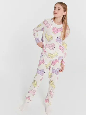 Уютная пижама для девочек из высококачественного хлопка идеально подходит для комфортного отдыха и сна. Модель состоит из джемпера и брюк, которые вместе создают гармоничный и стильный комплект. Круглая горловина и длинные рукава джемпера обеспечивают тепло и уют, а длинные брюки, слегка зауженные к низу, добавляют элегантности. Натуральный хлопковый материал, использованный в этой пижаме, обладает особой мягкостью и приятной текстурой, которая бережно окутывает нежную детскую кожу. Ткань отличается превосходной гигроскопичностью, поддерживая оптимальный микроклимат и предотвращая перегрев. Конструкция пижамы тщательно продумана с учетом особенностей детской анатомии, обеспечивая свободу движений и комфорт во время сна. Свободный крой и эластичный пояс брюк гарантирует максимальную свободу и удобство. Эта пижама представлена в широком размерном и цветовом ряде, что позволяет подобрать идеальный вариант для каждого ребенка.