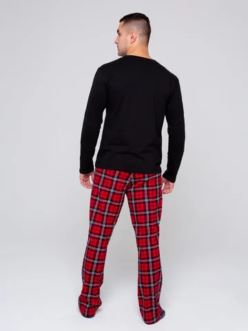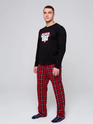 Мужская хлопковая пижама , состоит из лонгслива с округлой горловиной и классическими брюками прямого силуэта, пояс на резинке. Без карманов. Может быть использован как и домашний костюм. Рисунок на брюках может смещаться. Длина по спинке 69-73 см, длина брюк 105-109 см, длина рукава 64-66 см. Состав 100% хлопок. Рекомендации по уходу : бережная стирка при 30 градусах