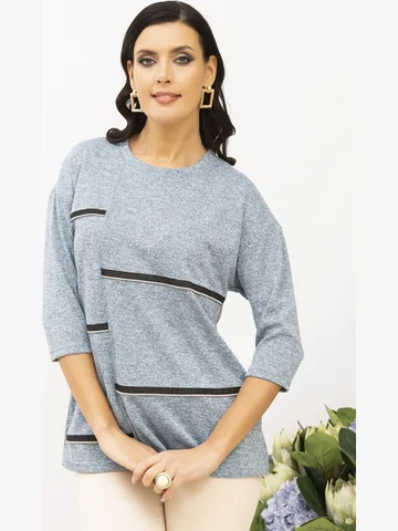 Блуза прямого силуэта с круглым вырезом. Низ переда и спинки закруглены. Линия спинки ниже линии переда. Горловина, манжет и карман отделаны кантом из экокожи. Перед изделия декорирован пуговицами. Линия плеча по плечевой точке. Рукав длинный. Длина изделия по спинке 66-70 см. Обращаем внимание, что рост модели 180см. Ткань мягкая, легко драпируется. Красивая блуза от Ahalodensa для базового гардероба.