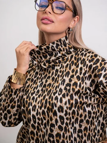 Универсальный свитер оверсайз прямого силуэта из мягкого объемного трикотажного полотна. Модель выполнена длиной до линии бедер. Круглый вырез горловины оформлен удобным воротником - стойкой. Воротник согреет в прохладную погоду и не вызовет дискомфорта, так как расположен далеко от шеи. Рукава длинные. Водолазка дополнит повседневный образ: можно носить самостоятельно, а можно накинуть на плечи. Модель выполнена в больших размерах. Отлично согреет в прохладный вечер. Джемпер подходит не только для повседневной носки, можно пойти в театр, если дополнить образ струящейся юбкой и подходящей обувью.