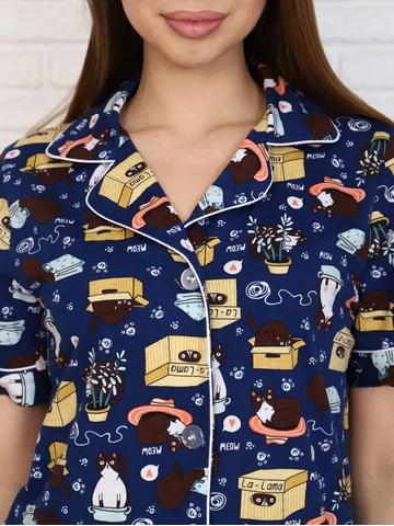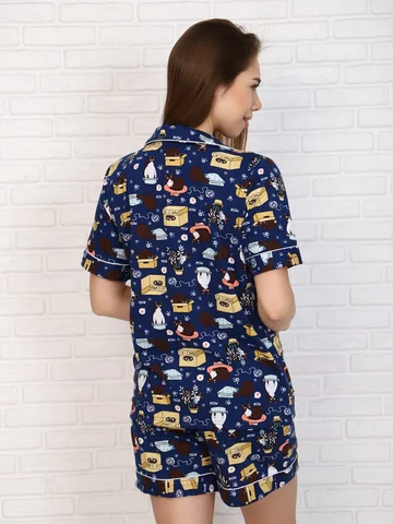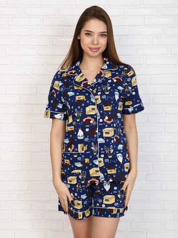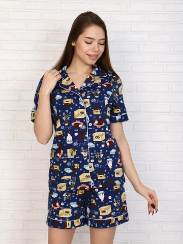 Женская трикотажная пижама из 100% хлопка. Комплект состоит из рубашки с коротким рукавом и шорт. Очень стильный и комфортный домашний костюм. Идеально подойдет как для дома, так и для сна.