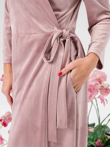 Женский шикарный и теплый халат из переливающегося бархатистого велюра. Прекрасная новинка для домашнего гардероба. Нежная и приятная ткань в потрясающем цвете — идеальный подарок для себя, для мамы или близкой подруги.